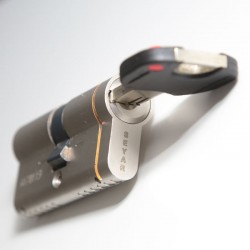 Le cylindre de haute sécurité SEYAR en laiton nickelé est composé de six goupilles actives sur ressort en bronze, équipé de 5 goupilles latérales et d'une barre de verrouillage actionné par cinq lamelles supérieures.